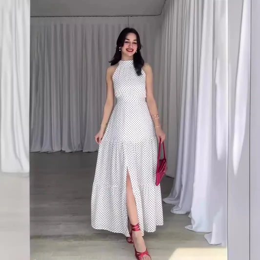 Halter Neck Maxi Dress with Side Slit – Vohran