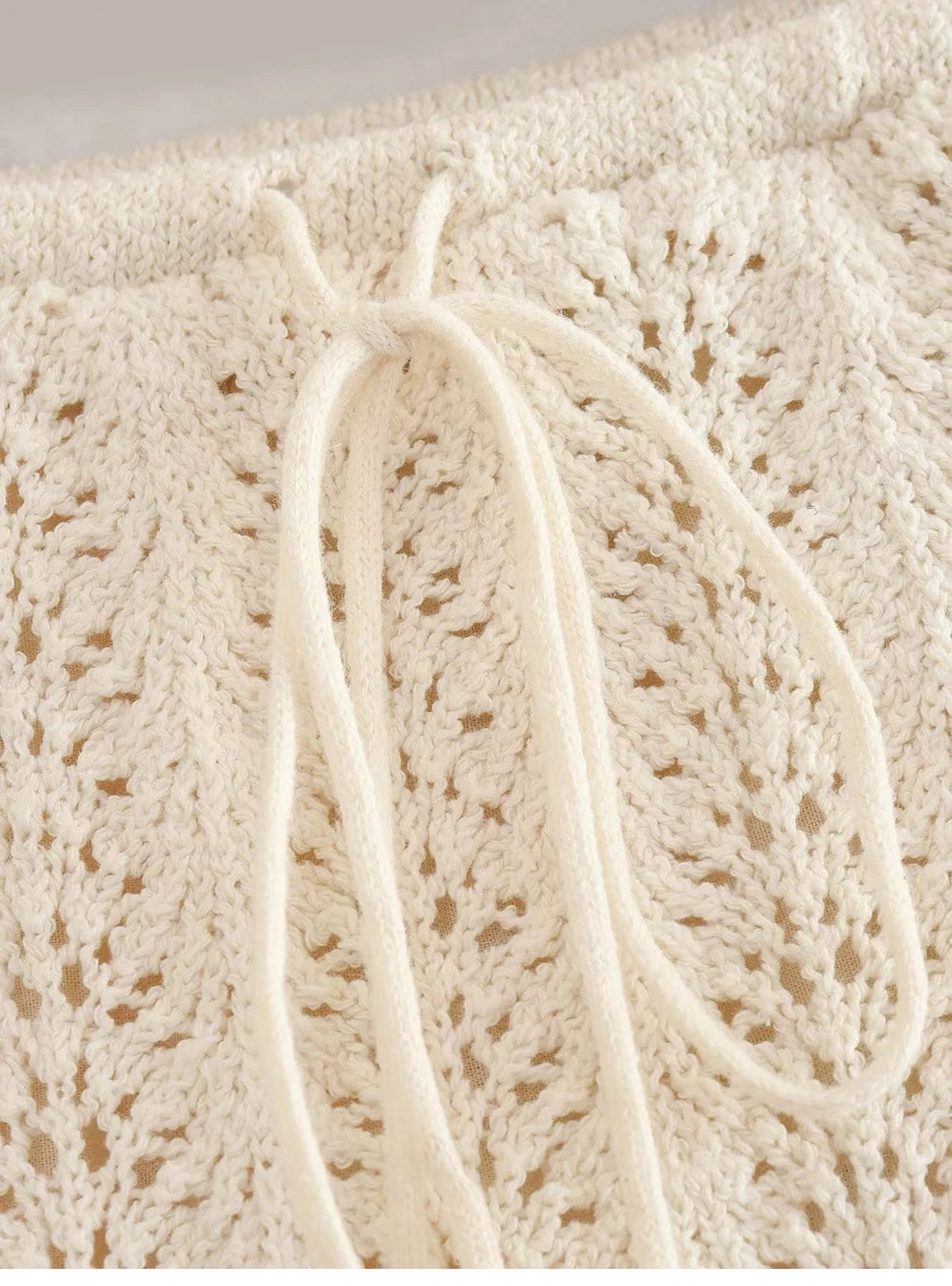 Perfect for sunny brunches, relaxed afternoons, or seaside walks, this set redefines casual chic. The breathable knit keeps you cool and comfortable while exuding timeless sophistication.