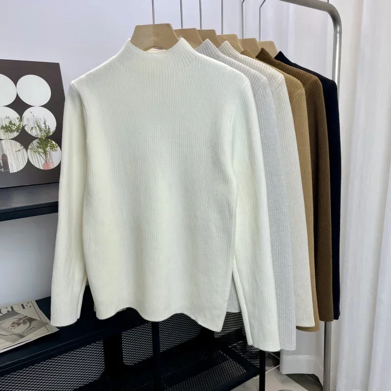 Turtleneck Winter Sweater Women Elegant Thicken Velvet Lined Warm Sueter Knitted Pullover Slim Tops Jersey Knitwear Jumper New